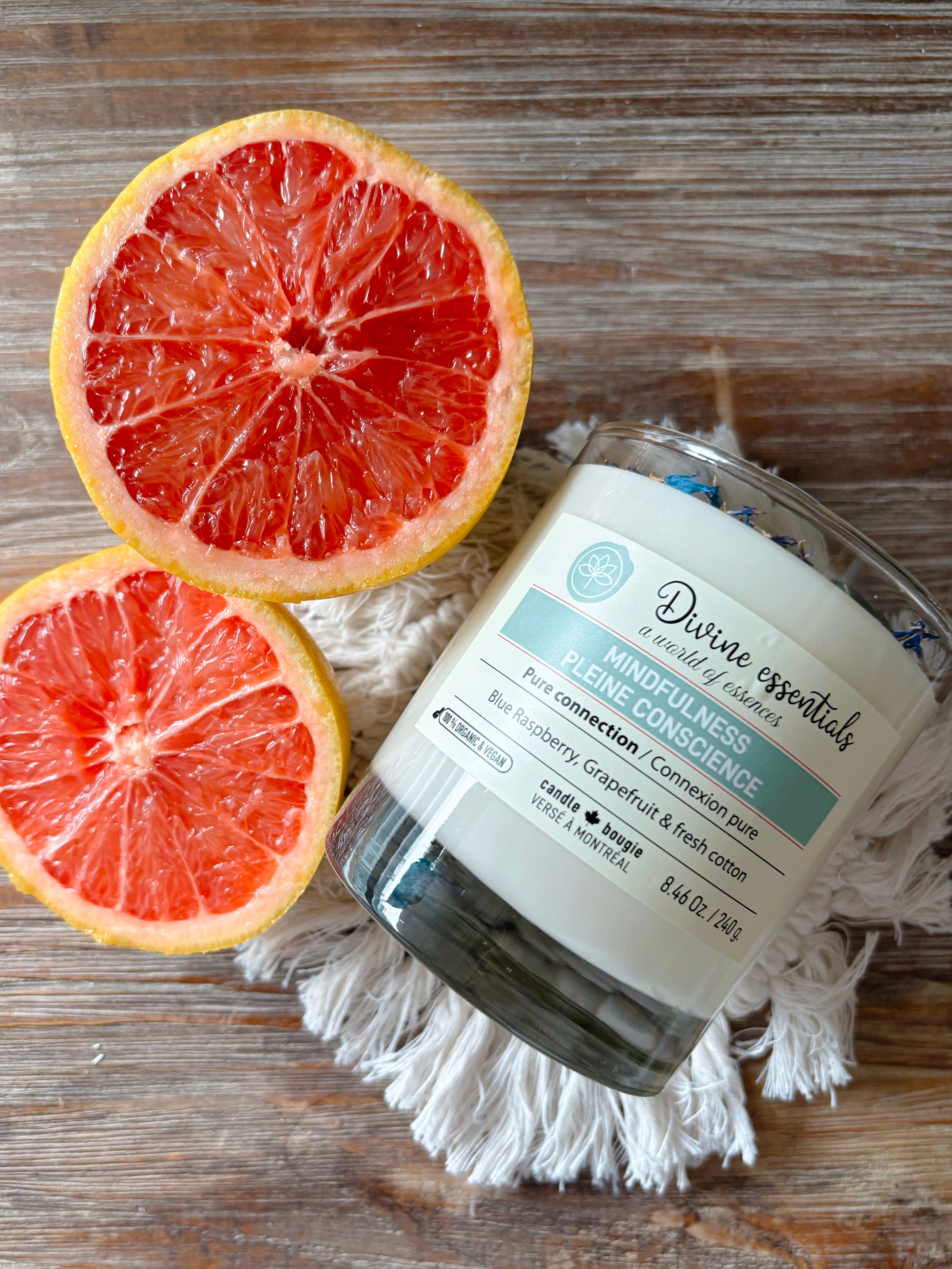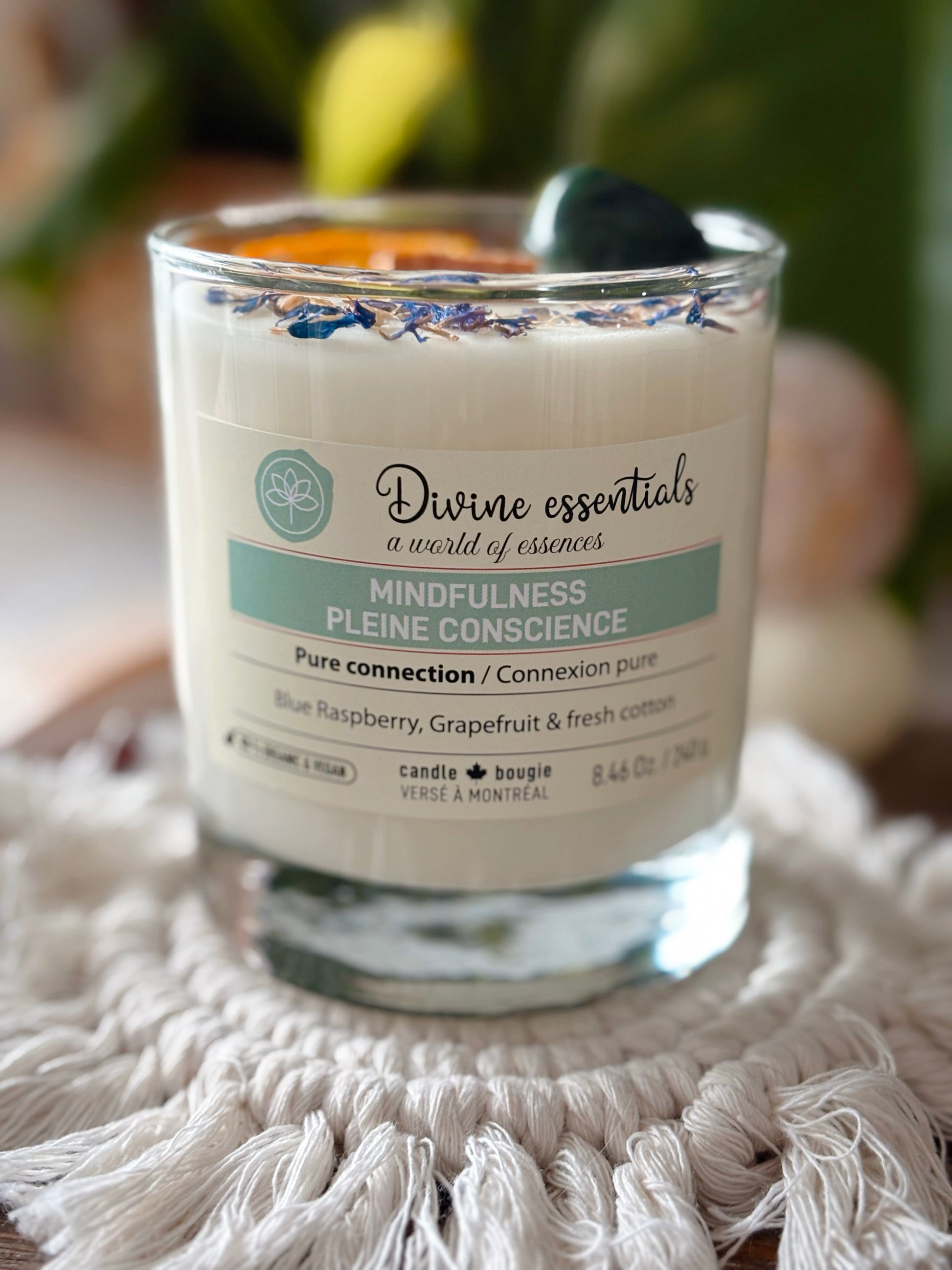 Embrassez l'essence du présent avec la pleine conscience , un rappel vivant pour rester ancré dans votre réalité et apprécier les petits bonheurs de la vie. Cette bougie a été conçue pour favoriser la pause, la clarté et la gratitude quotidienne. Un ancrage sensoriel pour votre ici et maintenant.